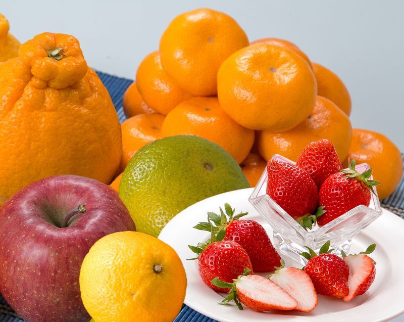 | 内容 | ●いちご1箱(化粧箱入) ●不知火(しらぬい)1個 ●スイートスプリング1個 ●リンゴ1個 ●その他柑橘数個 |