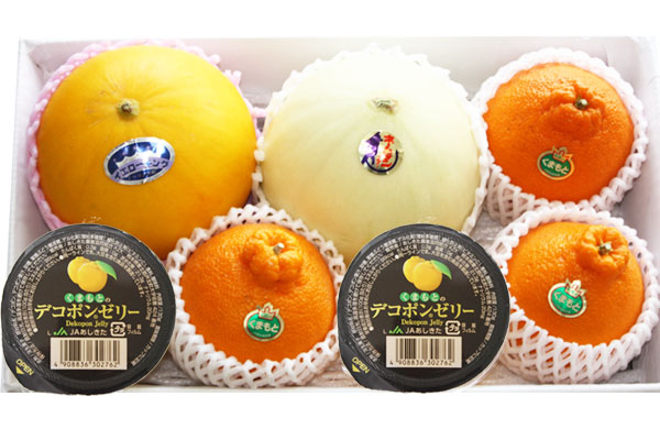 | 内容 | ●ホームランメロン1玉 ●イエローキングメロン1玉 ●デコポン3個 ●デコポンゼリー2個 |