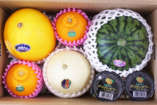 | 内容 | ●ホームランメロン1玉 ●イエローキングメロン1玉 ●小玉スイカ1玉 ●デコポン2個 ●デコポンゼリー2個 |